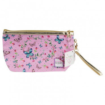 - косметичка украшена классическим принтом бренда Lukky из бабочек и цветов, который дополнен блестящими звёздочками