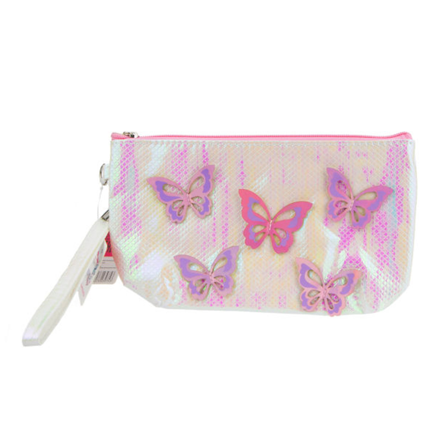 Жемчужная косметичка LUKKY с голографическими накладными бабочками.