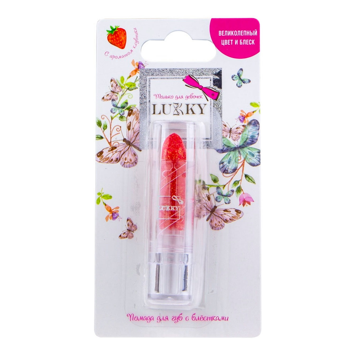 Т16762 Lukky Помада, для губ с блестками, с ароматом клубники,цвет - красный, блистер