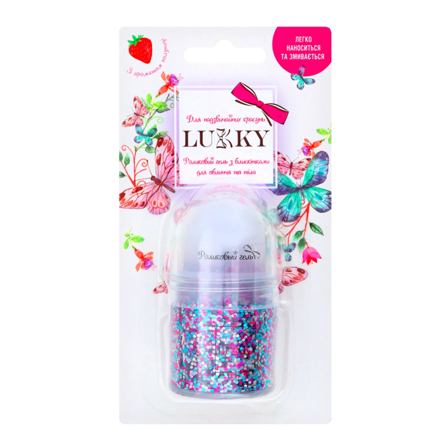 Т15375 Lukky роликовый гель с блёстками для лица и волос, с ароматом клубники, 20 мл