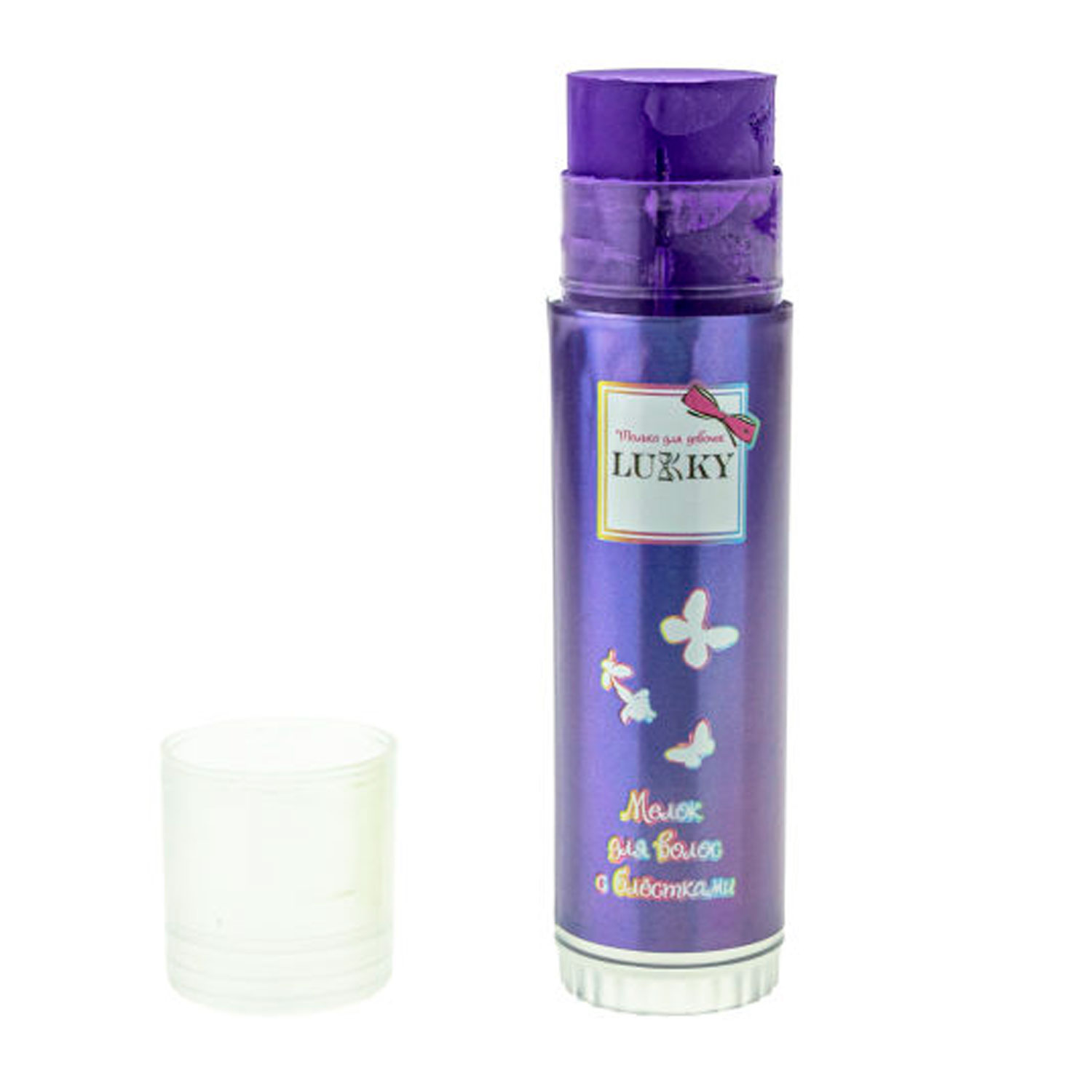 - выдвижной, по типу губной помады, цветной красящий мелок для волос с частицами мерцающего блеска