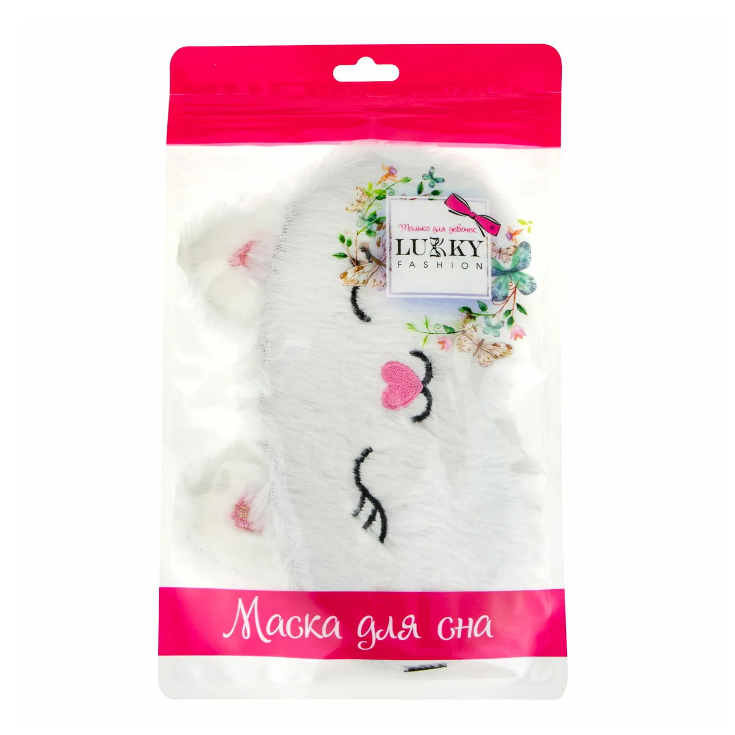 Т20889 Lukky Fashion маска для сна Кошечка белая, 24,6х14,6, пакет