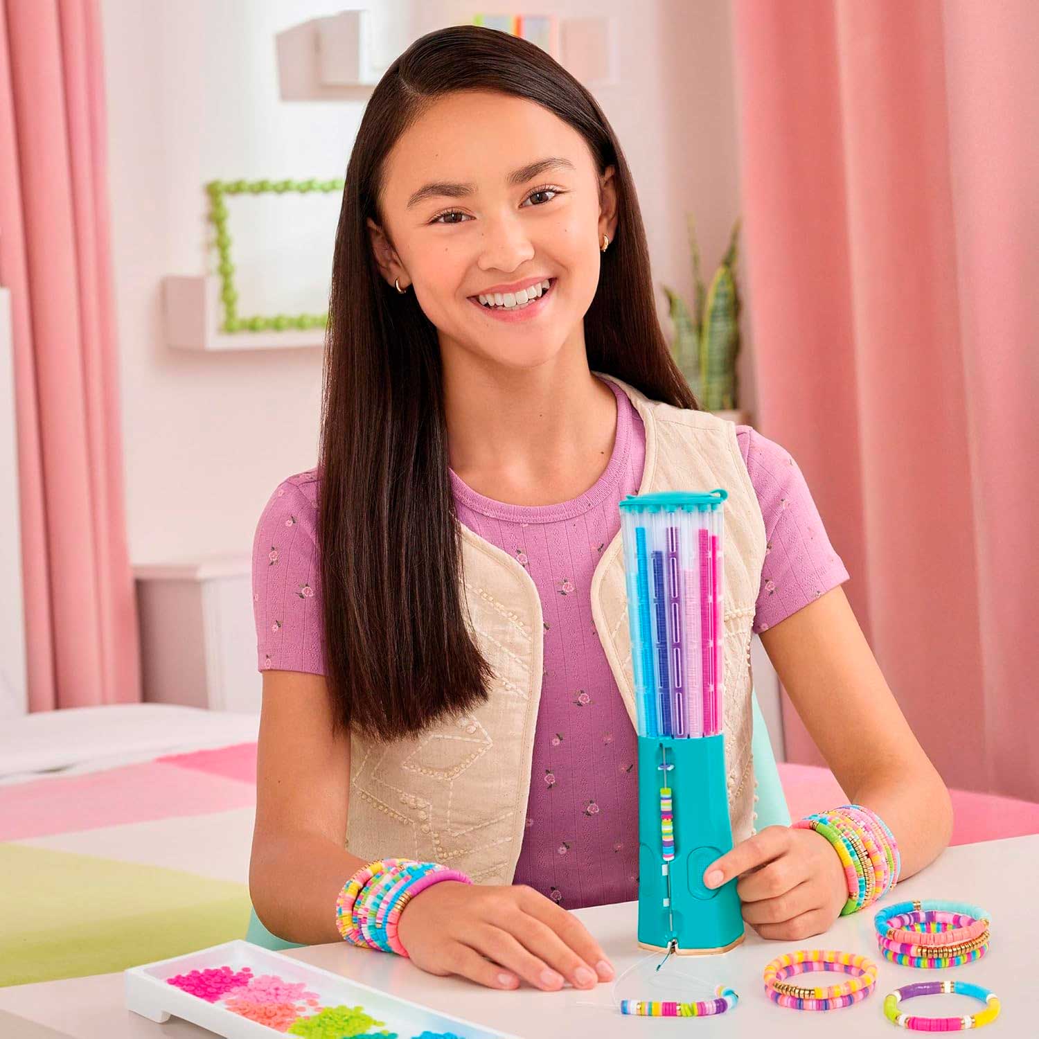 - благодаря специальной машинке и карусели для сортировки, создание браслетов становится еще быстрее, удобнее и увлекательнее. Просто нажми — и бусина уже на шнуре!
