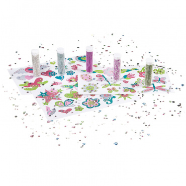 Работать с набором легко. Следуйте узору на выбранной Вами модели тату, украсьте её стразами по предложенному на модели узору и формам страз, затем дополните дизайн блёстками. Всё готово, осталось только перенести тату на тело.