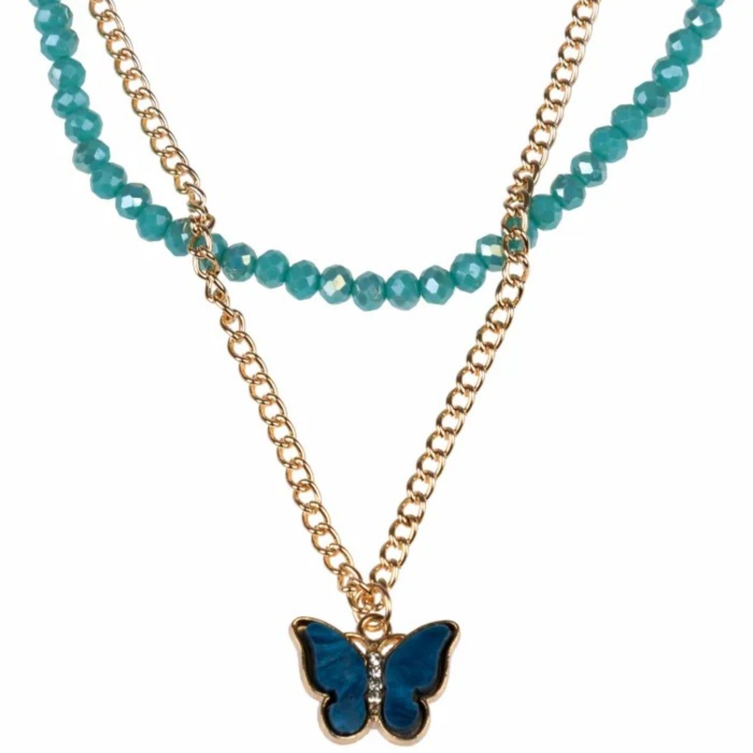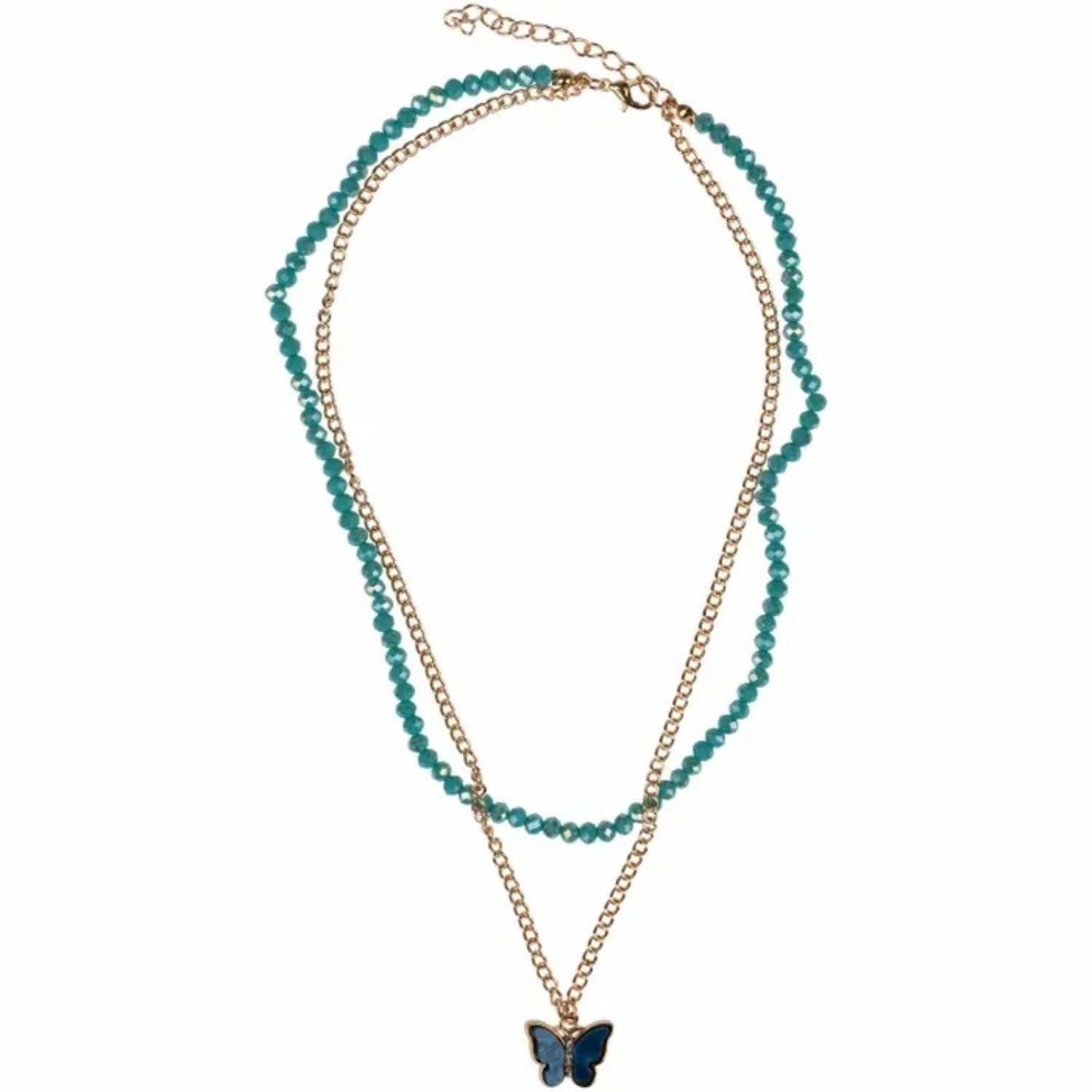 Т24691Lukky Fashion наб.украшений:двойн.цепочка и двойн.браслет с бусинами и подвеской бабочкой