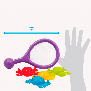 Весёлый яркий набор для купания в ванной с формочками и сачком принесёт много веселья Вашему малышу во время купания.