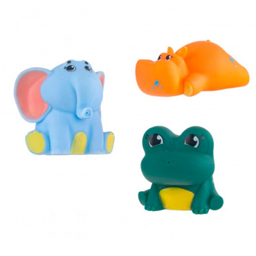 - 3 игрушки для ванны с пищалками и брызгалками (слоник, бегемот, лягушка)