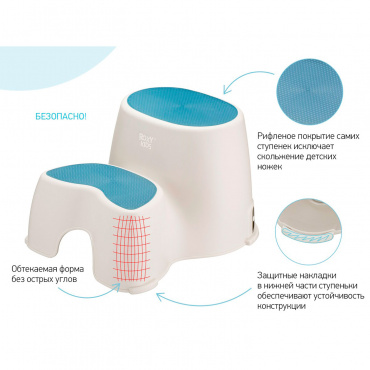 - прорезиненное покрытие ступенек исключает скольжение детских ножек, тактильно приятно и обеспечивает массажный эффект