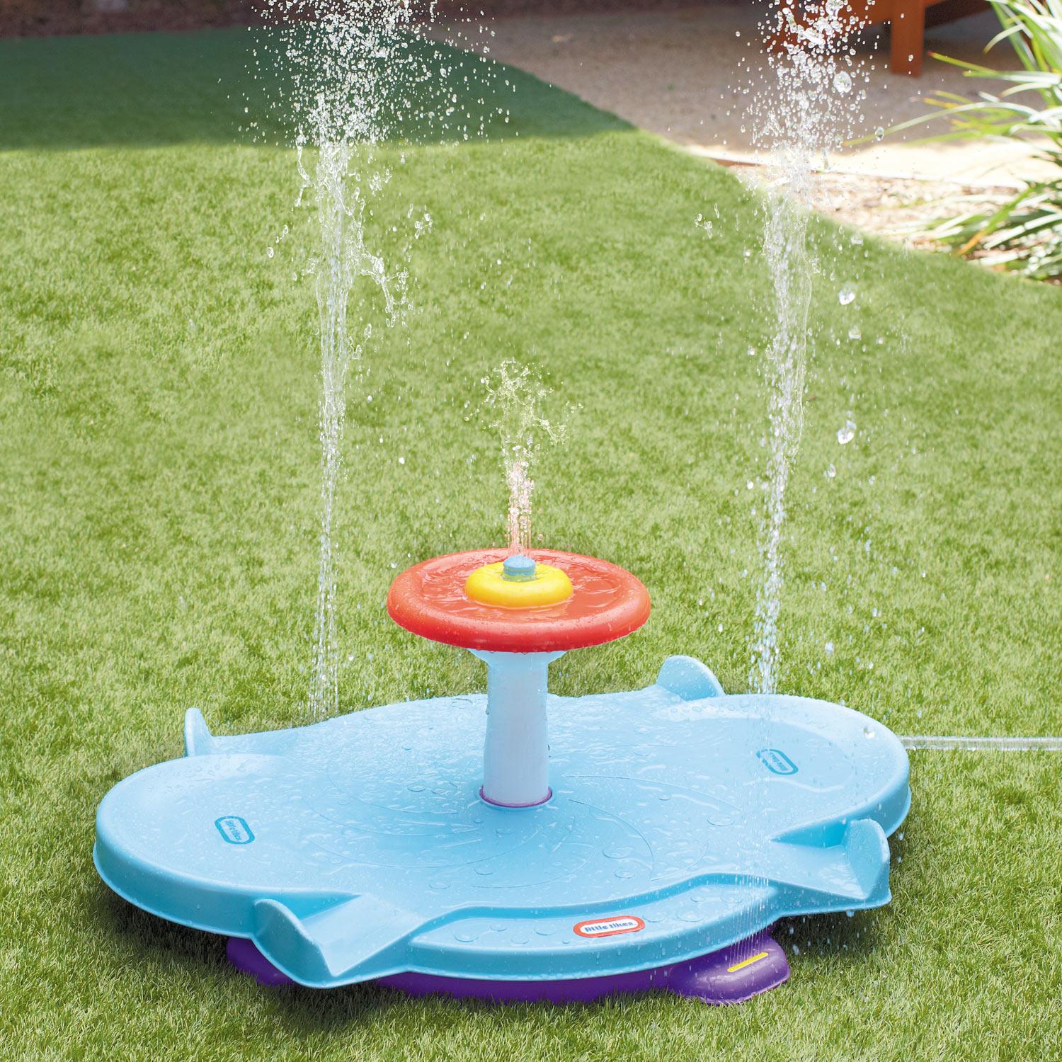 Дети будут опрыскиваться водой при вращении на игрушке.