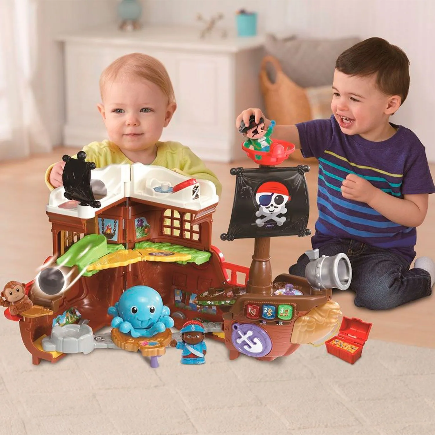 Этот корабль с реалистичной пушкой поможет мальчишкам разыграть приключения морских пиратов, которые отправились на таинственный остров в поисках сокровищ.