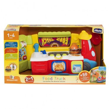 Говорящая игрушка Chicco “Фургон-кухня” двуязычная обучающая игрушка-автомобиль, который превращается в кухню и наоборот.