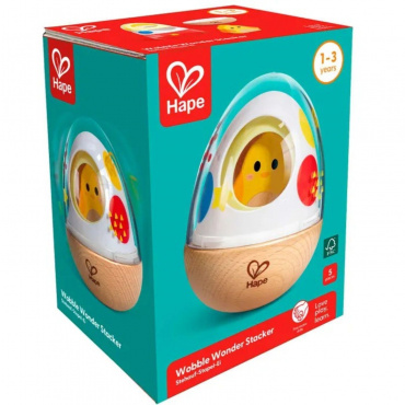 Игрушка - неваляшка "Домик для цыпленка" от бренда Hape будет интересна для малышей, потому что позволяет проводить несколько операций подряд: снять колпачки, спрятать цыпленка и обратно.