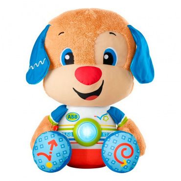 Большой плюшевый щенок Фишер Прайс побуждает детей к движению.