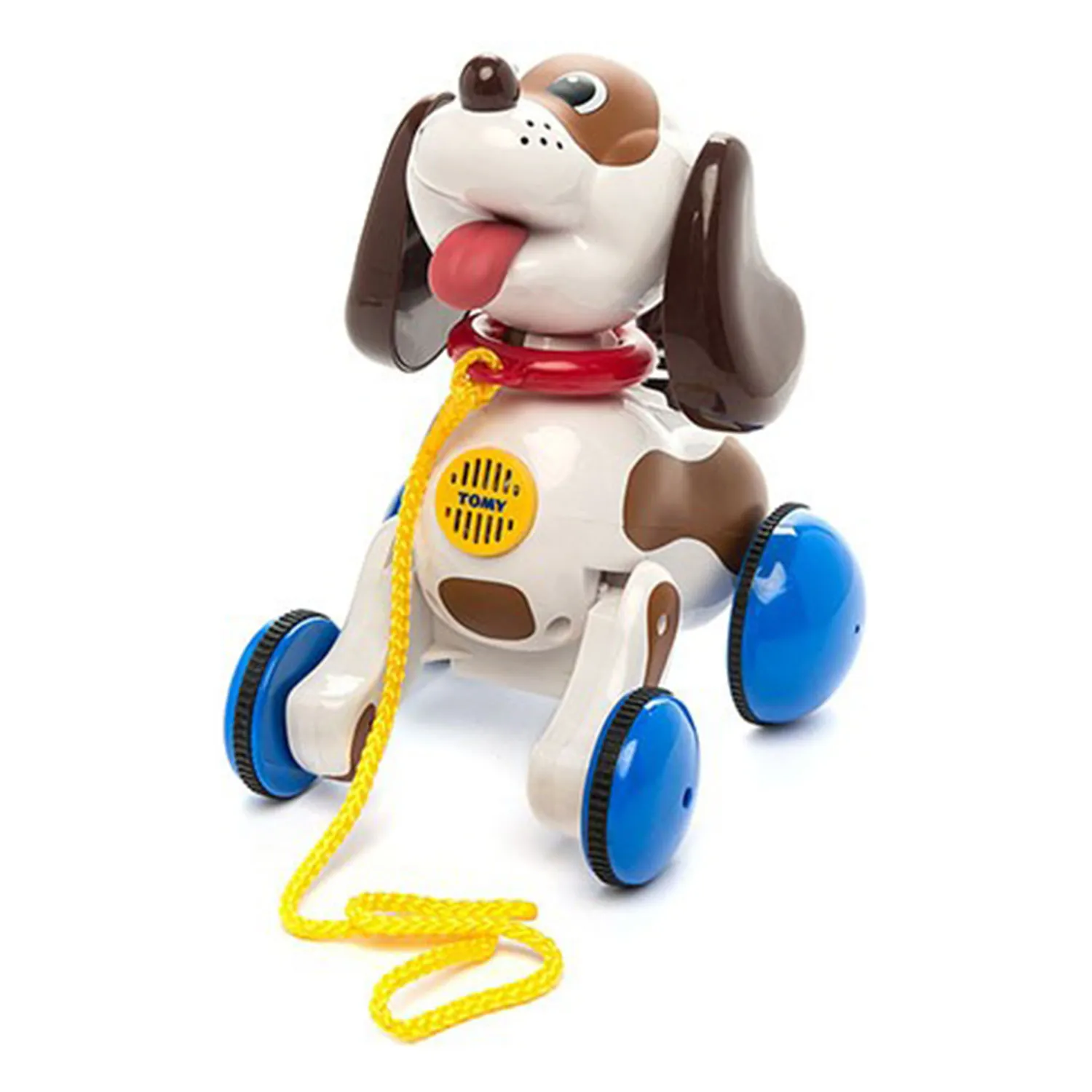 Стоит лишь потянуть за веревочку, и собачка, шлепая ушками и лая, побежит за своим хозяином.