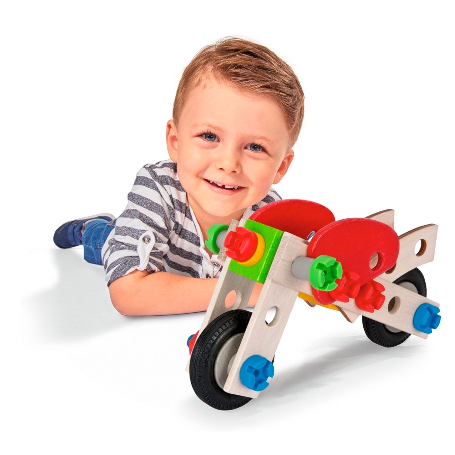- детали конструктора выполнены из натуральной шлифованной древесины высокого качества, которая не оставляет на руках ребенка заноз и царапин