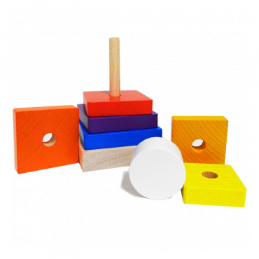 • необходимо собрать высокую башню из 8 разных по цвету и форме деталей