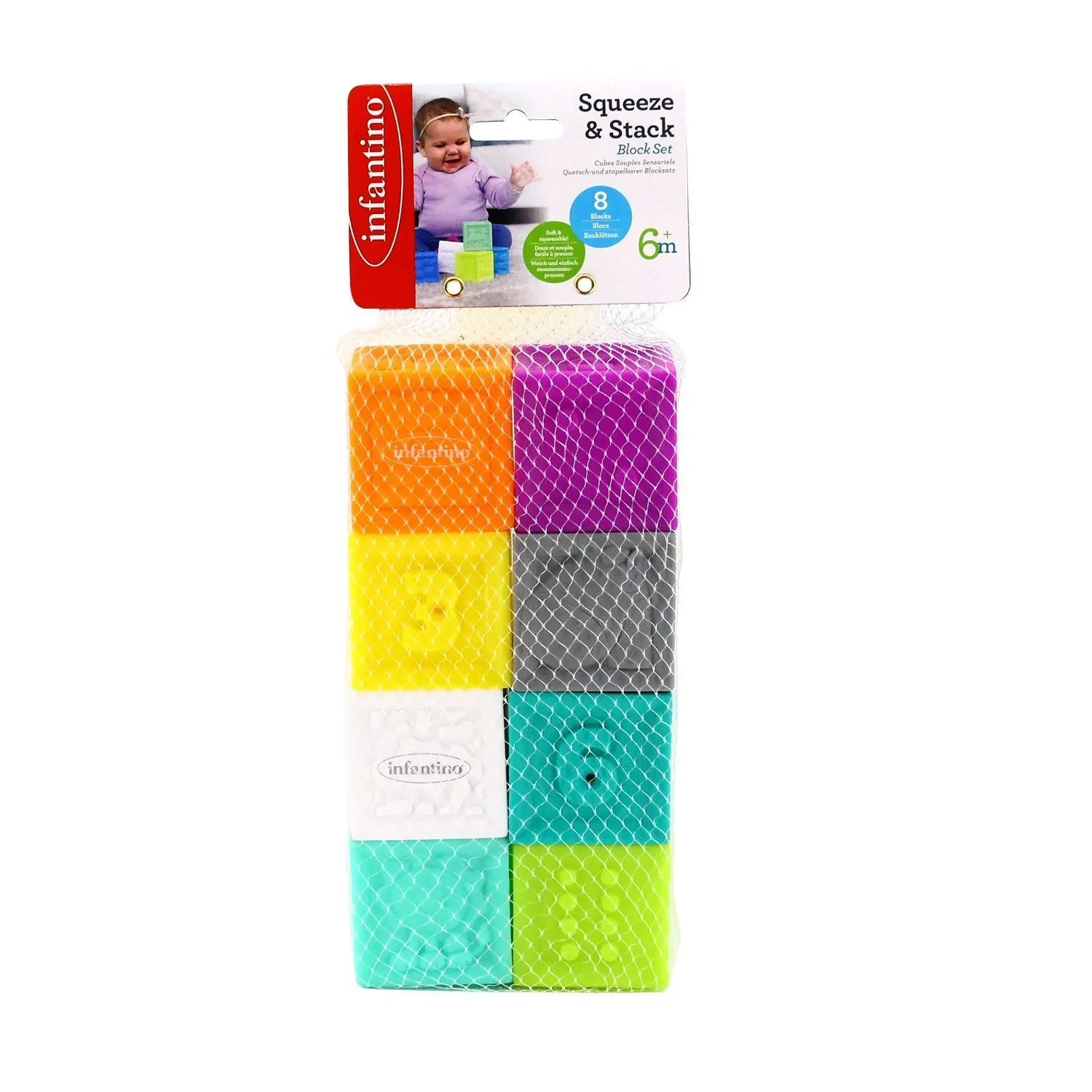 Эти силиконовые кубики от бренда Infantino выполнены из материалов, не содержащих BPA и предназначены для того, чтобы ребенку развить моторику, а также познакомить его с цветами, текстурами и цифрами.