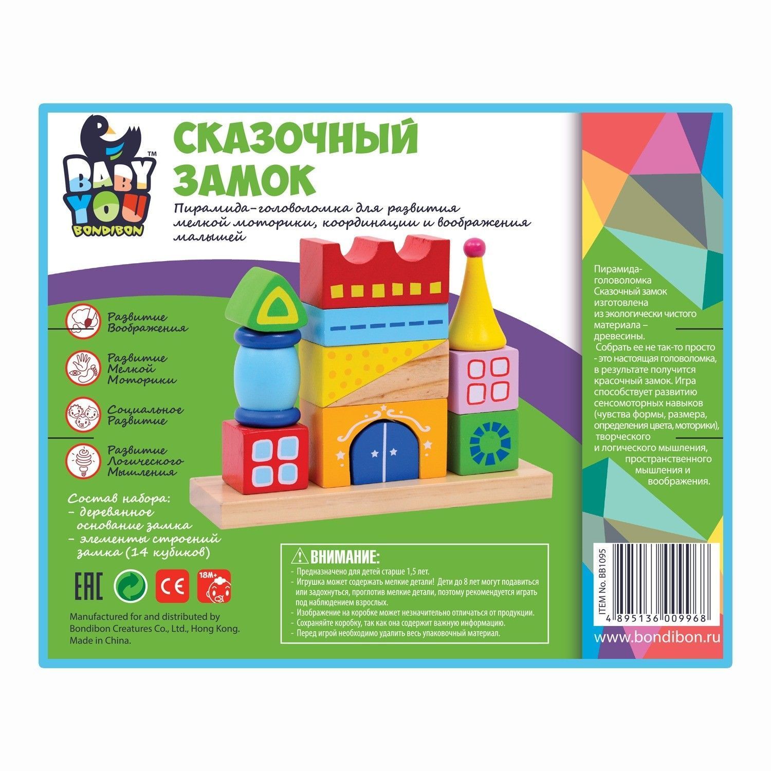 Деревянная пирамидка-замок - это супер развивающая игра для малышей от 2-х лет.