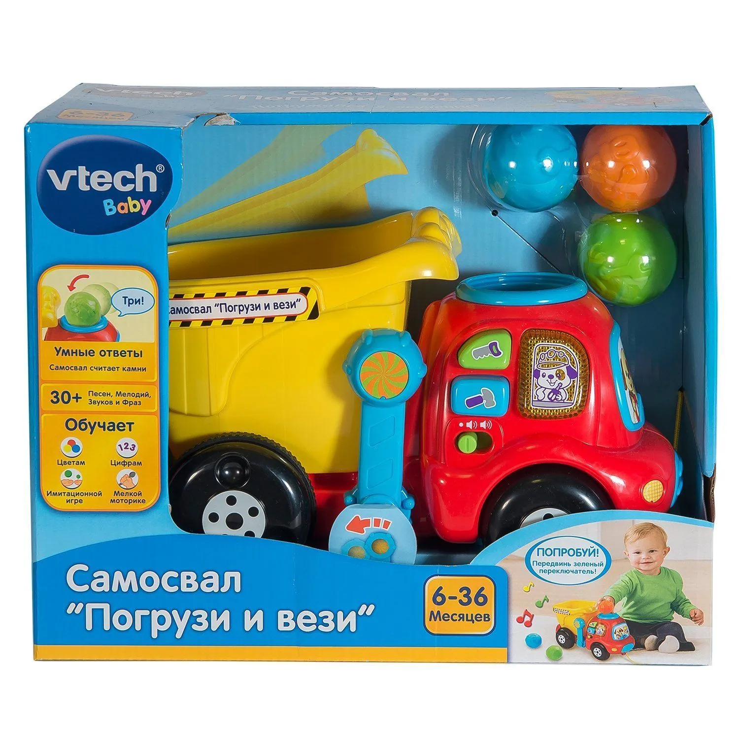 - самосвал может воспроизводить забавные фразы, веселые песенки 30 шт и мелодии 6 шт
