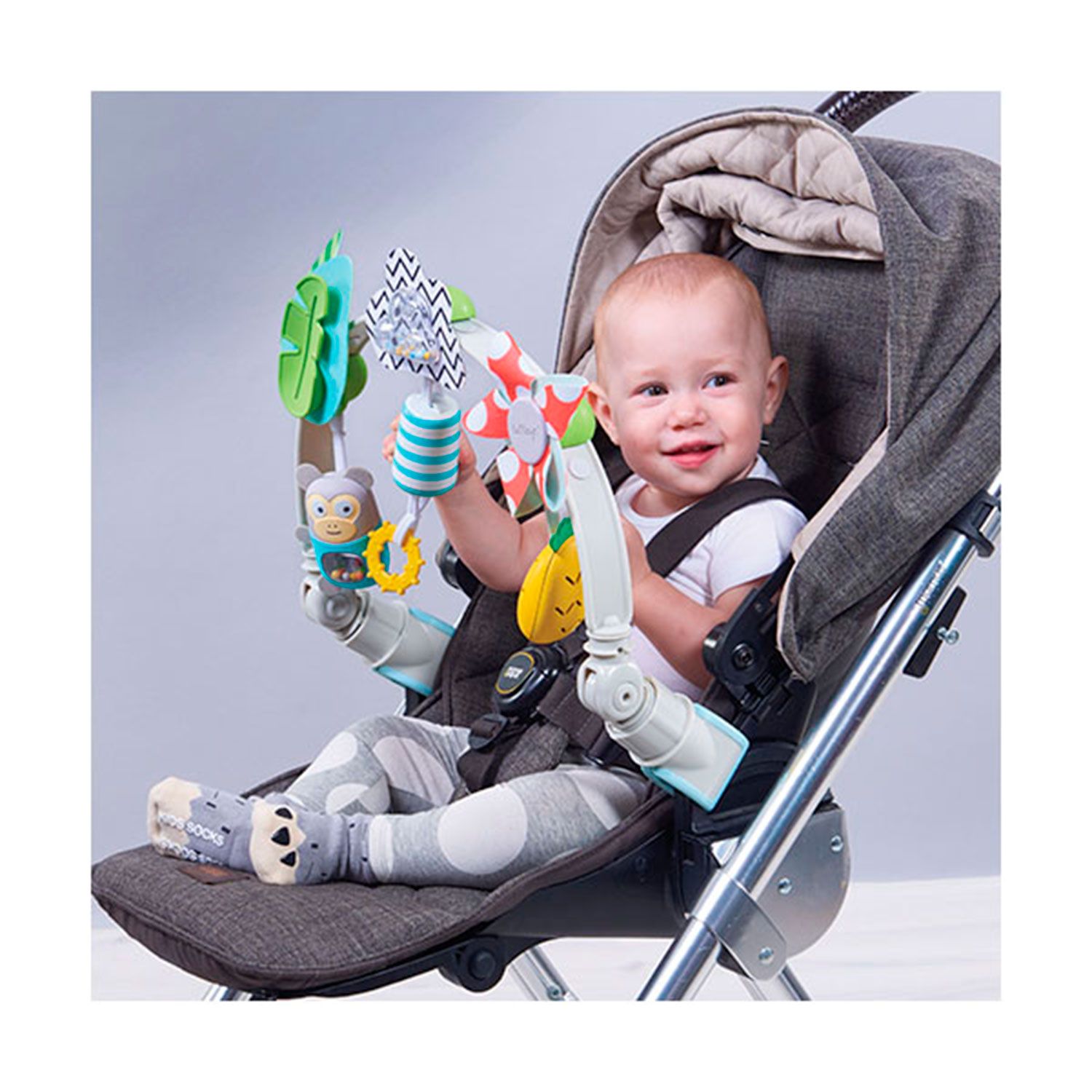 Отправляясь на прогулку не забудьте взять с собой дугу с множеством развлекательных и развивающих элементов.