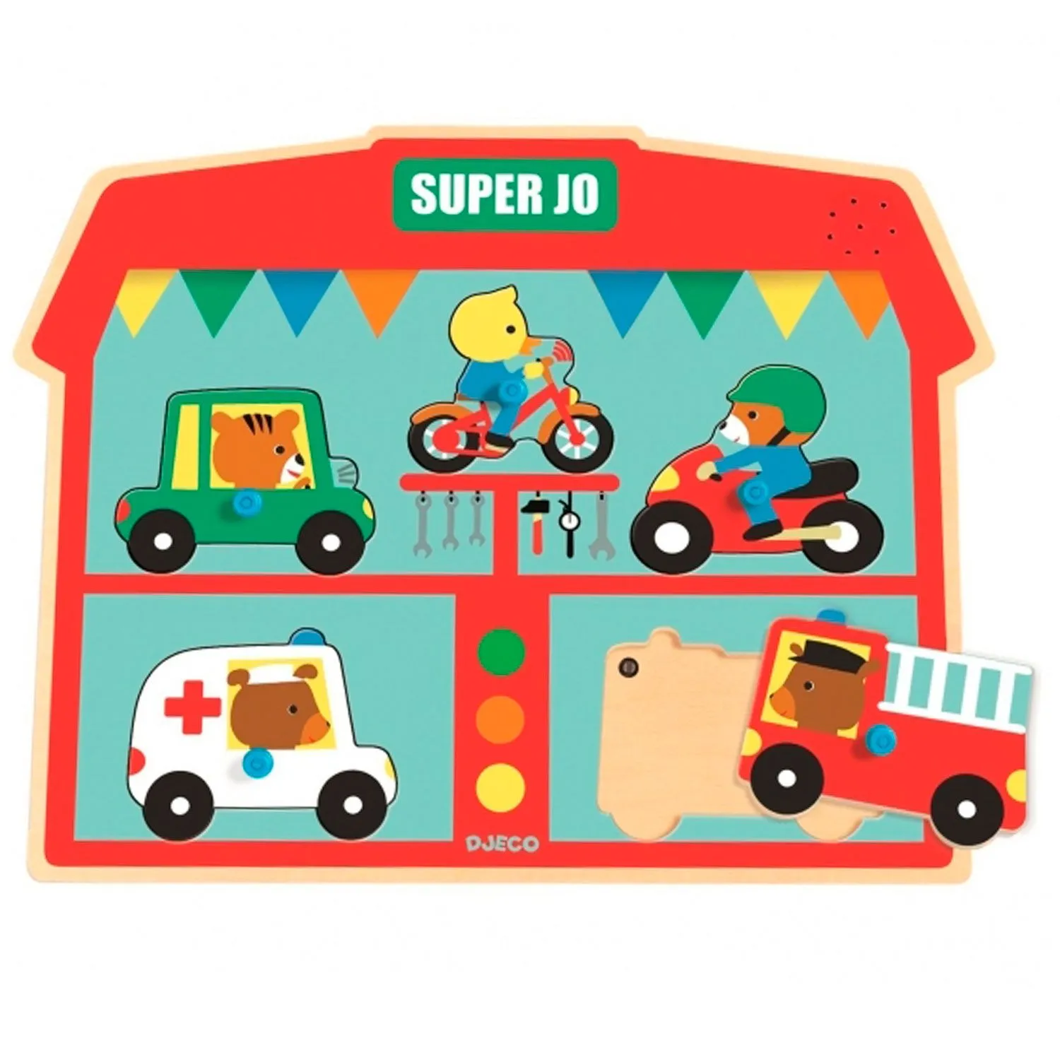 - в качестве игровых элементов выступают деревянные фигурки автомобилей