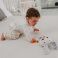 - при нажатии на мордочку игрушка воспроизводит различные смешные звуки, которые развеселят малыша