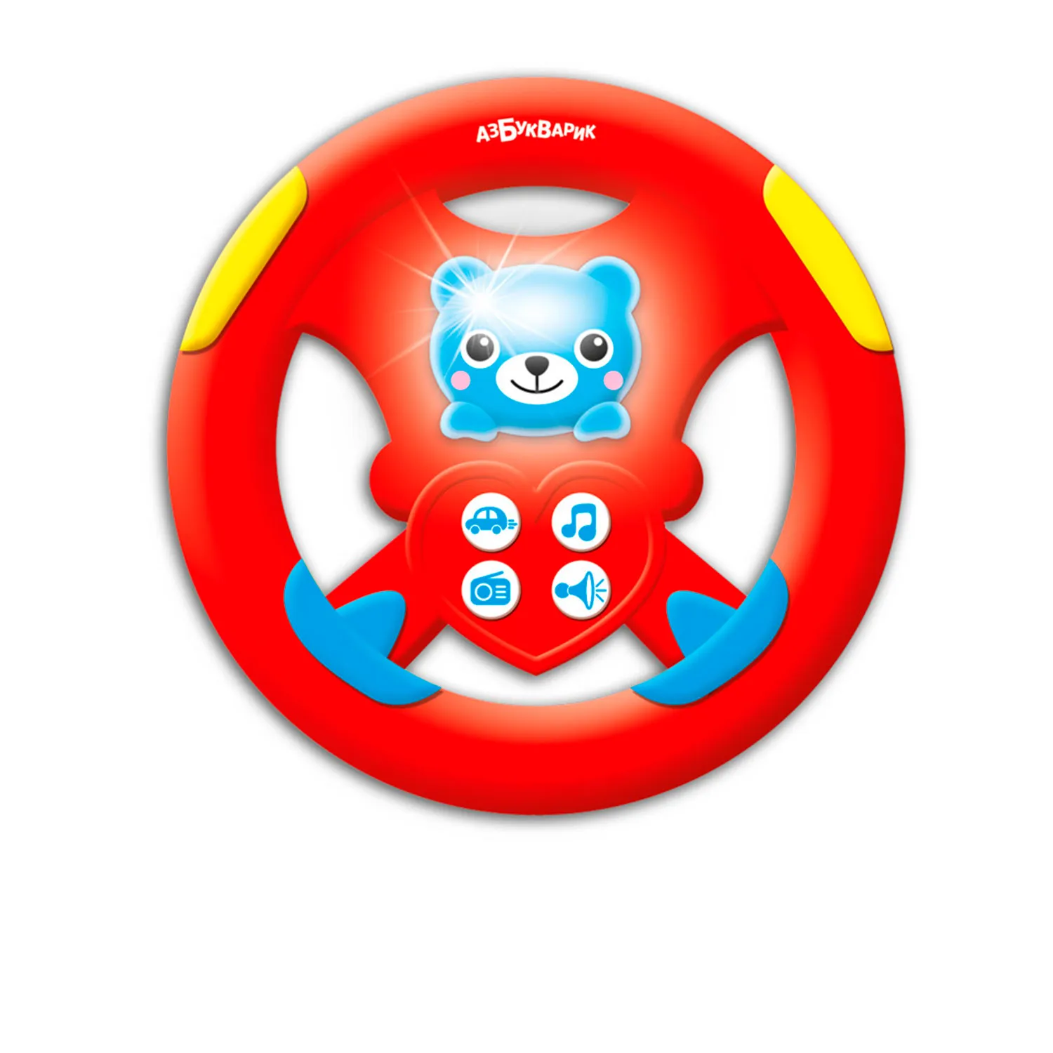 - музыкальный руль с медвежонком порадует малыша настоящими звуками зажигания, сигнализации и разными сигналами машин
