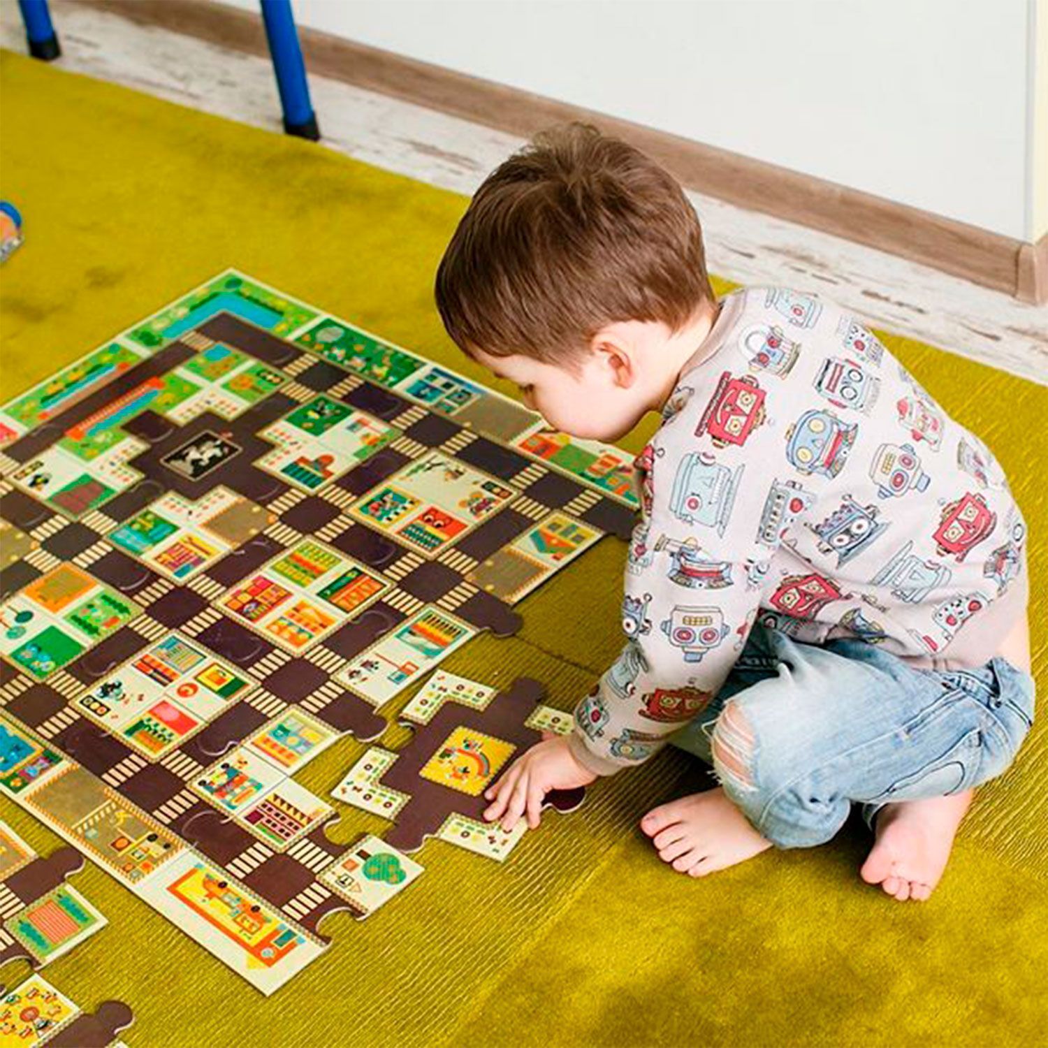 - детский пазл-гигант представлен 24 элементами, из которых дети смогут построить автомобильную трассу для увлекательной игры с машинками