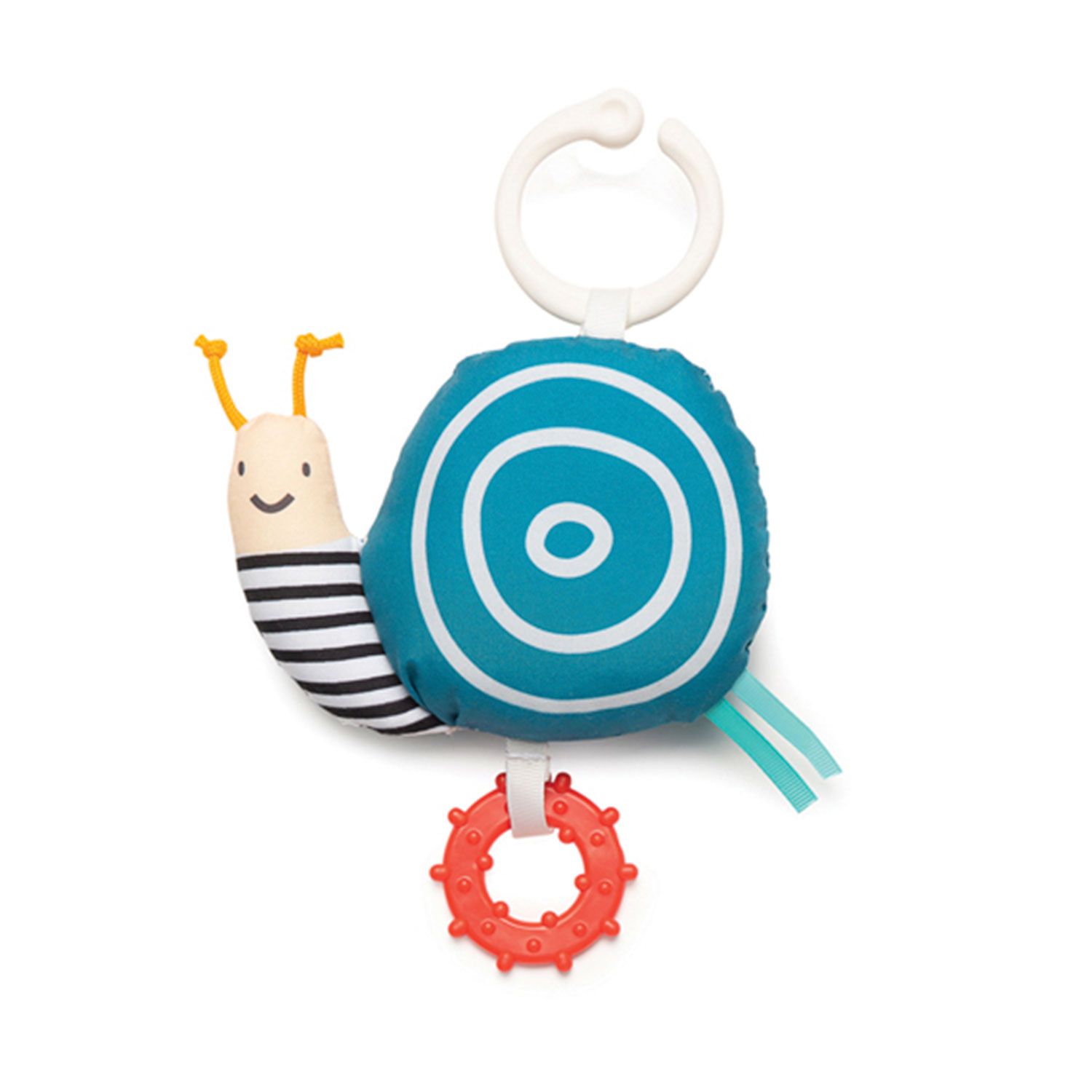- можно прикрепить к кроватке или ручкам автокресла с помощью липучки