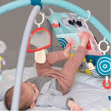 - набор состоит из удобного коврика, двух полукруглых арок и оснащен 6 подвесными игрушками: двусторонний шуршащий «Сенси центр», погремушка Коала с прорезывателем, игрушка Улитка с прорезывателем, двусторонний Гриб с зеркалом, погремушка Бабочка с кольцом, музыкальная игрушка с красочными огоньками