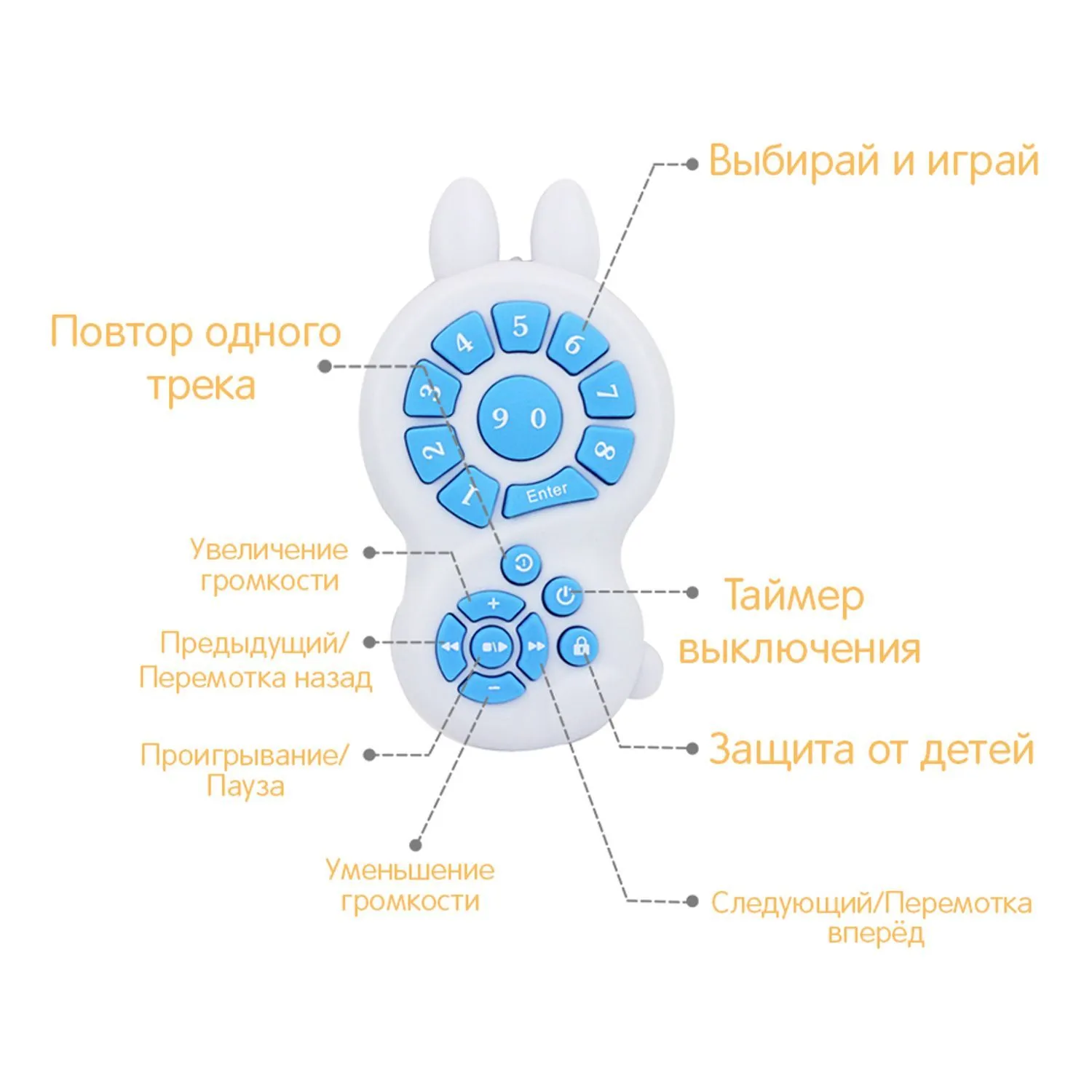 - встроенная карта памяти micro SD объёмом 8 Гб хранит более 80 мелодий и сказок