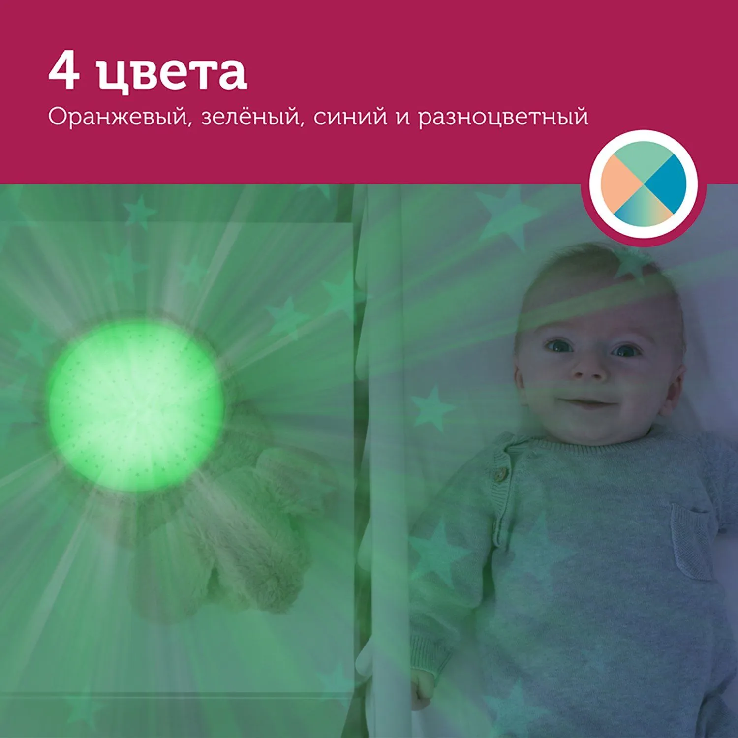 Успокаивает малыша, проецируя на потолок звёздочки, превращая детскую комнату в магическое звёздное небо.