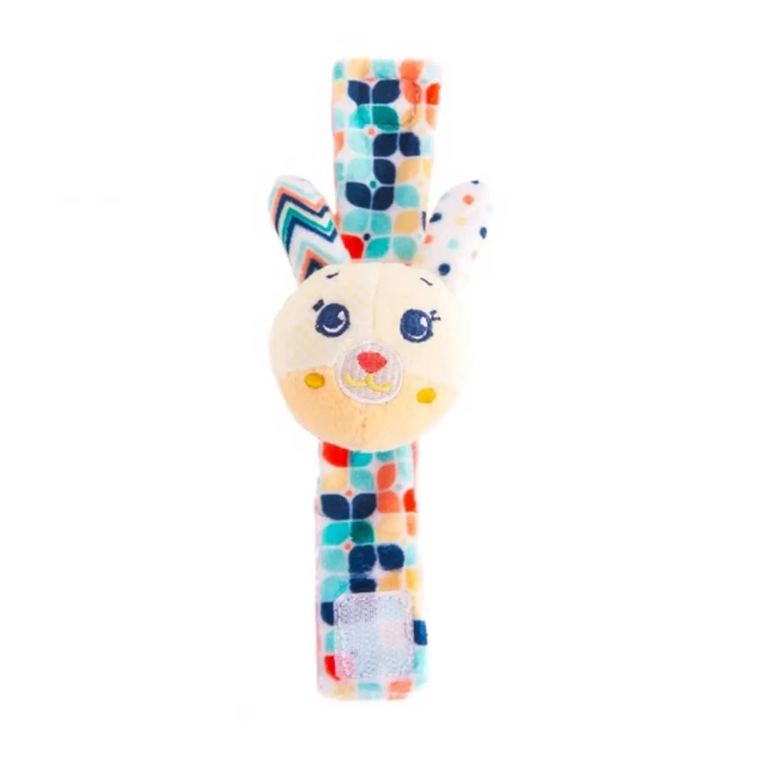 - браслет с мордочкой зайки Лаки можно надеть на руку с помощью мягкой липучки