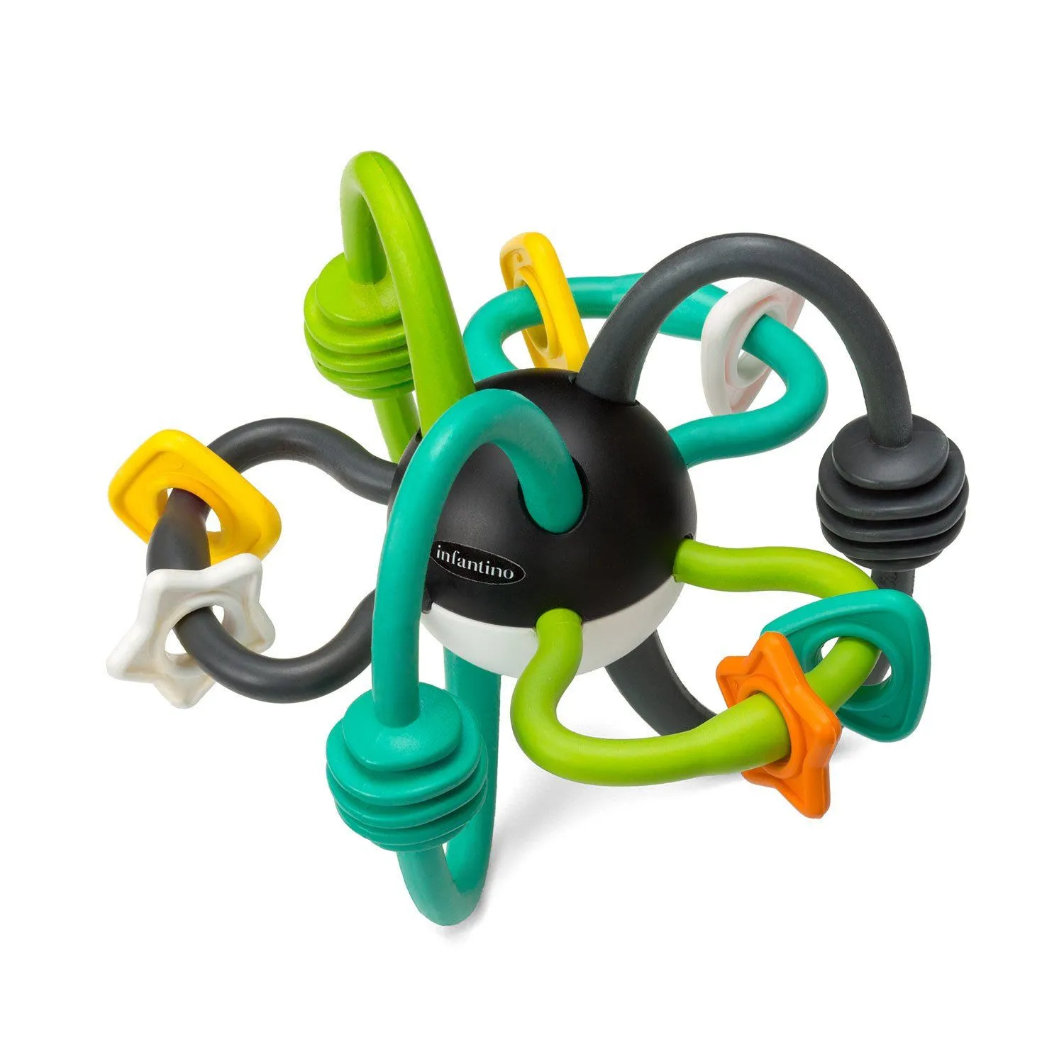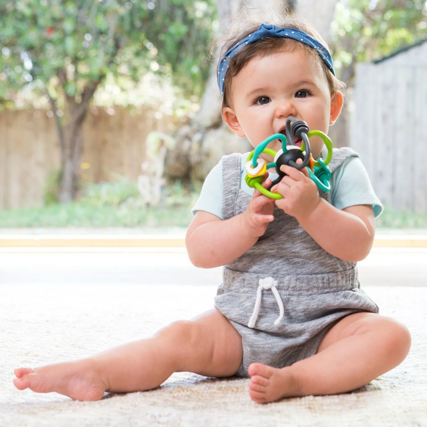 Развивающая многофункциональная игрушка - это погремушка с подвижными элементами и одновременно массажер - прорезыватель для десен малышей.