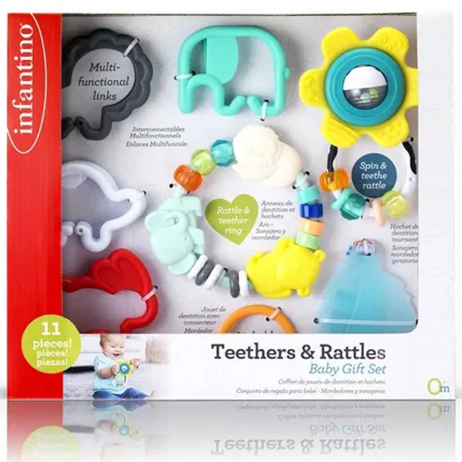 Подарочный набор Infantino «Прорезыватели и погремушки» — это идеальный стартовый комплект для малышей с рождения.