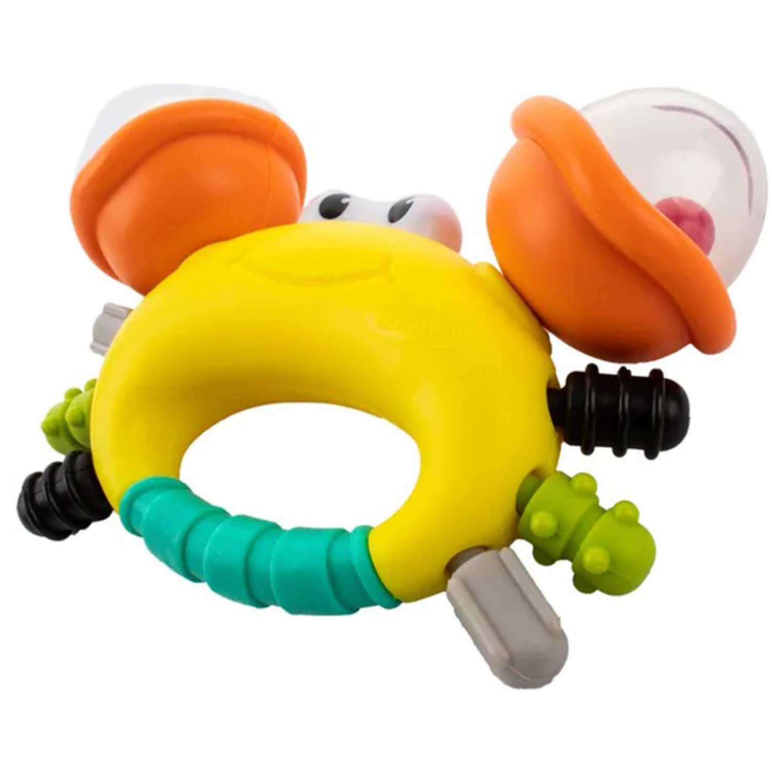 - яркий дизайн: насыщенный жёлтый цвет и милое выражение "лица" краба привлекают внимание малыша и способствуют визуальному развитию