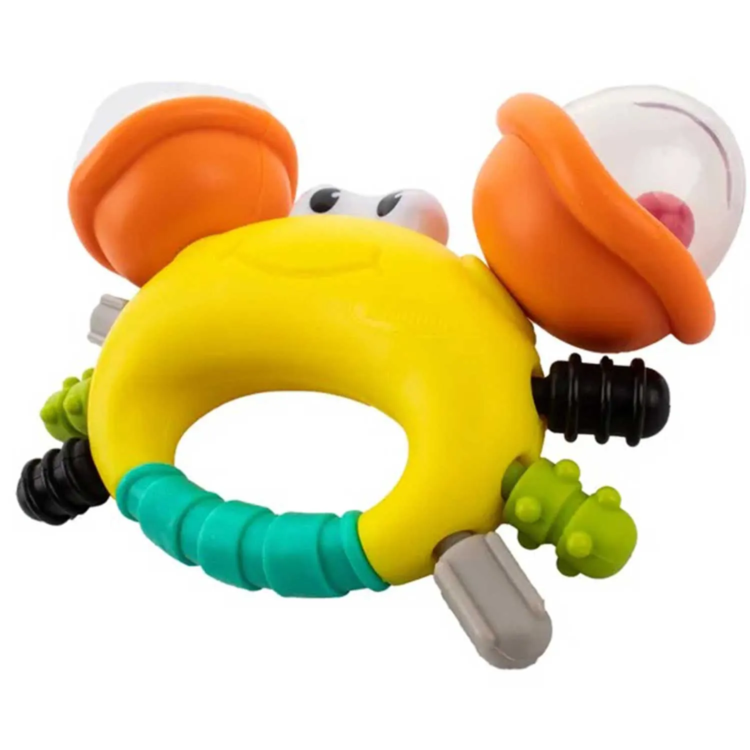 Красочная игрушка-погремушка "Весёлый краб" с функцией прорезывателя станет неотъемлемым помощником для облегчения неприятных ощущений в период прорезывания зубов у ребенка.