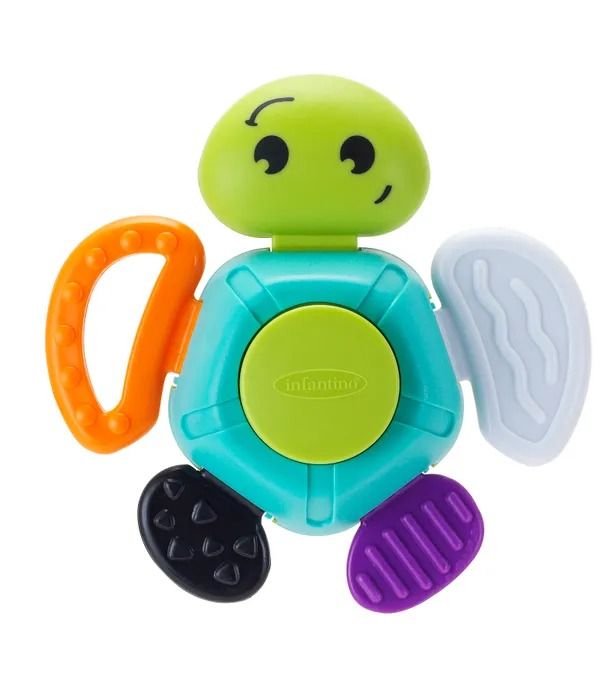 Игрушка Забавная Черепашка Infantino станет незаменимым спутником вашего ребенка в момент прорезывания первых зубов, массируя десны ребенка при помощи своих плавничков.