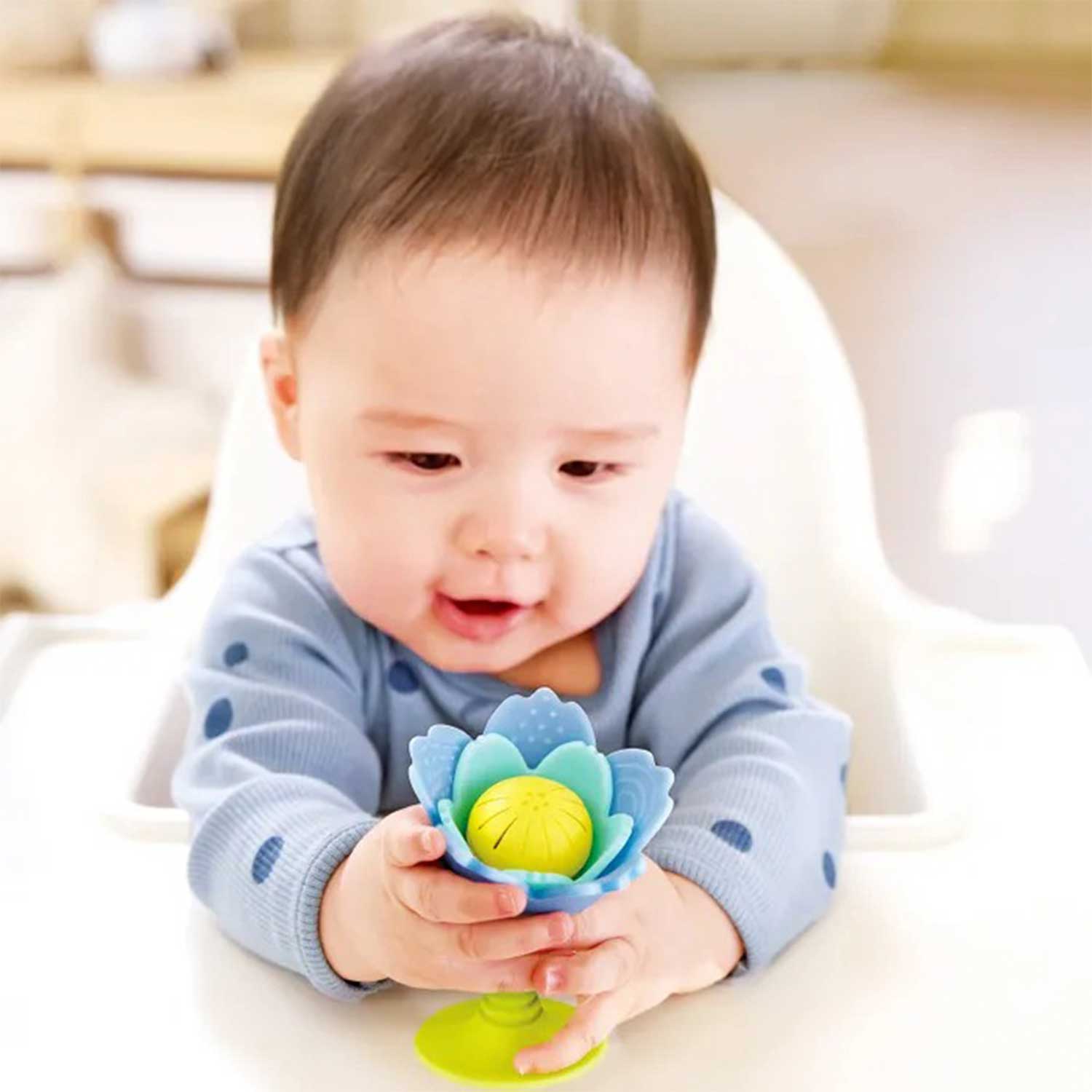 Погремушка Hape "Малышам" Голубой цветок, 3в1 – это многофункциональная развивающая игрушка для малышей от 3 месяцев.