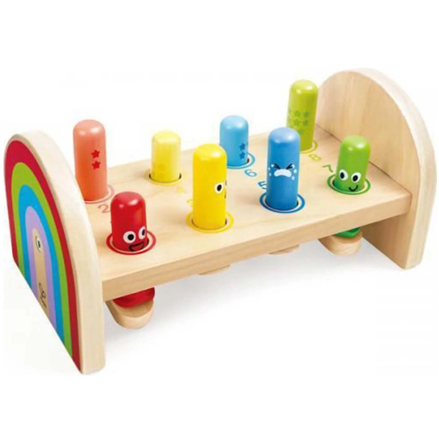 Развивающая игрушка Hape "Стучалка" Радужная колотушка с молотком (E0529_HP) — это яркий и увлекательный игровой набор, который помогает малышу познавать мир через игру. Благодаря продуманному дизайну и натуральным материалам, игрушка развивает координацию движений, внимание и зрительное восприятие.
