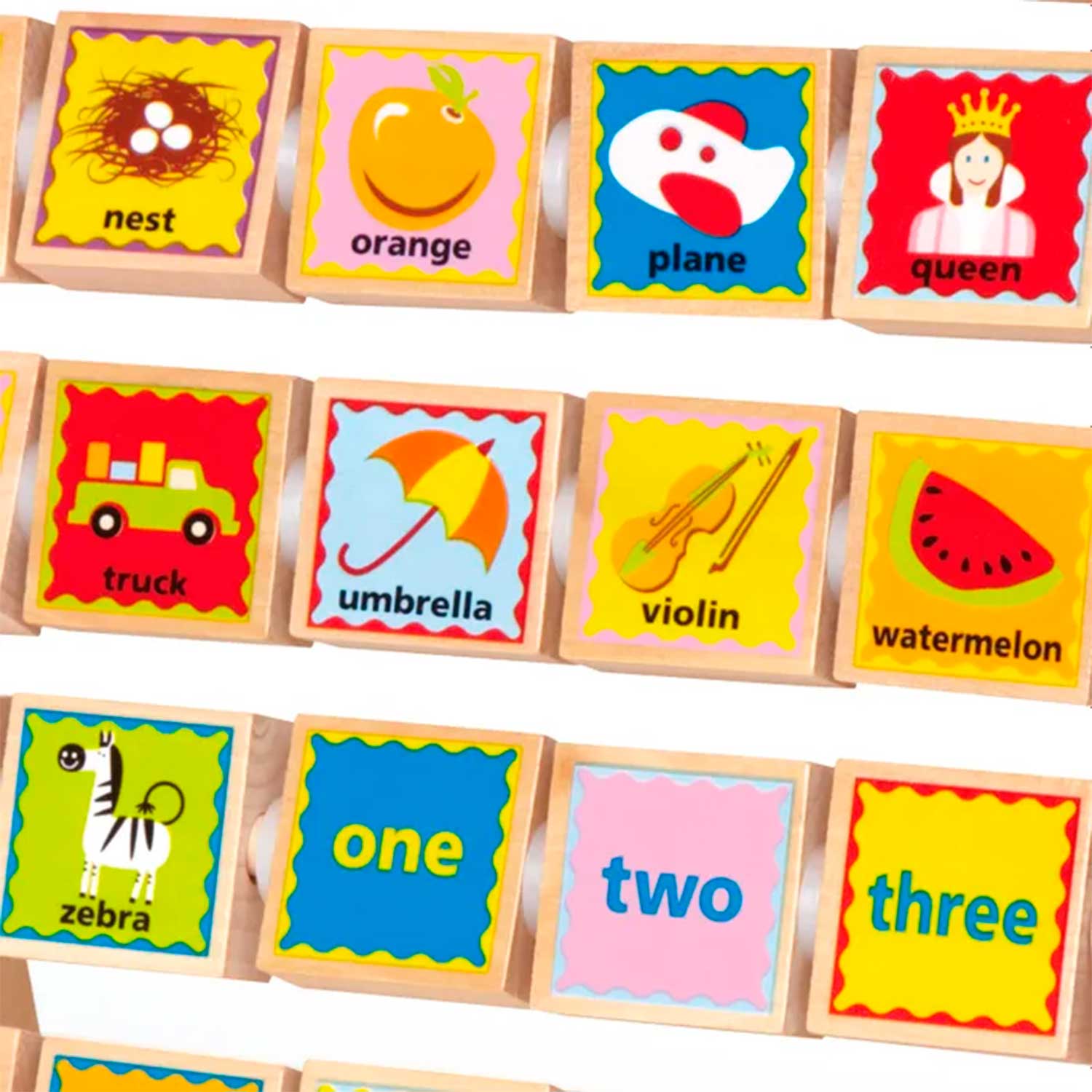 - обучение через игру: двусторонние элементы с буквами и изображениями помогают ребенку запоминать алфавит естественным образом