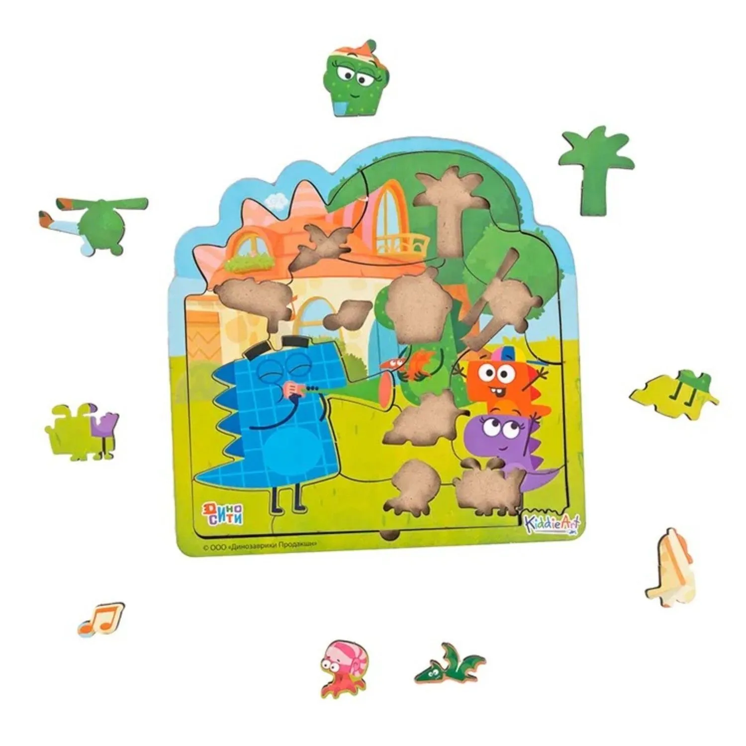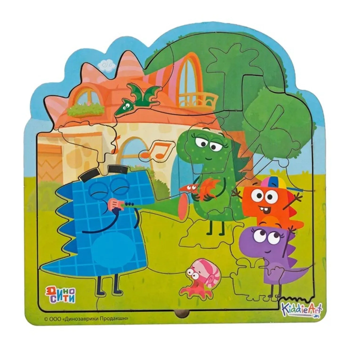 Деревянный пазл-головоломка ДиноСити "Семейка Завров на природе" выполнен в оригинальной форме с забавными узнаваемыми героями семейки Завров по мотивам популярного мультфильма ДиноСити.