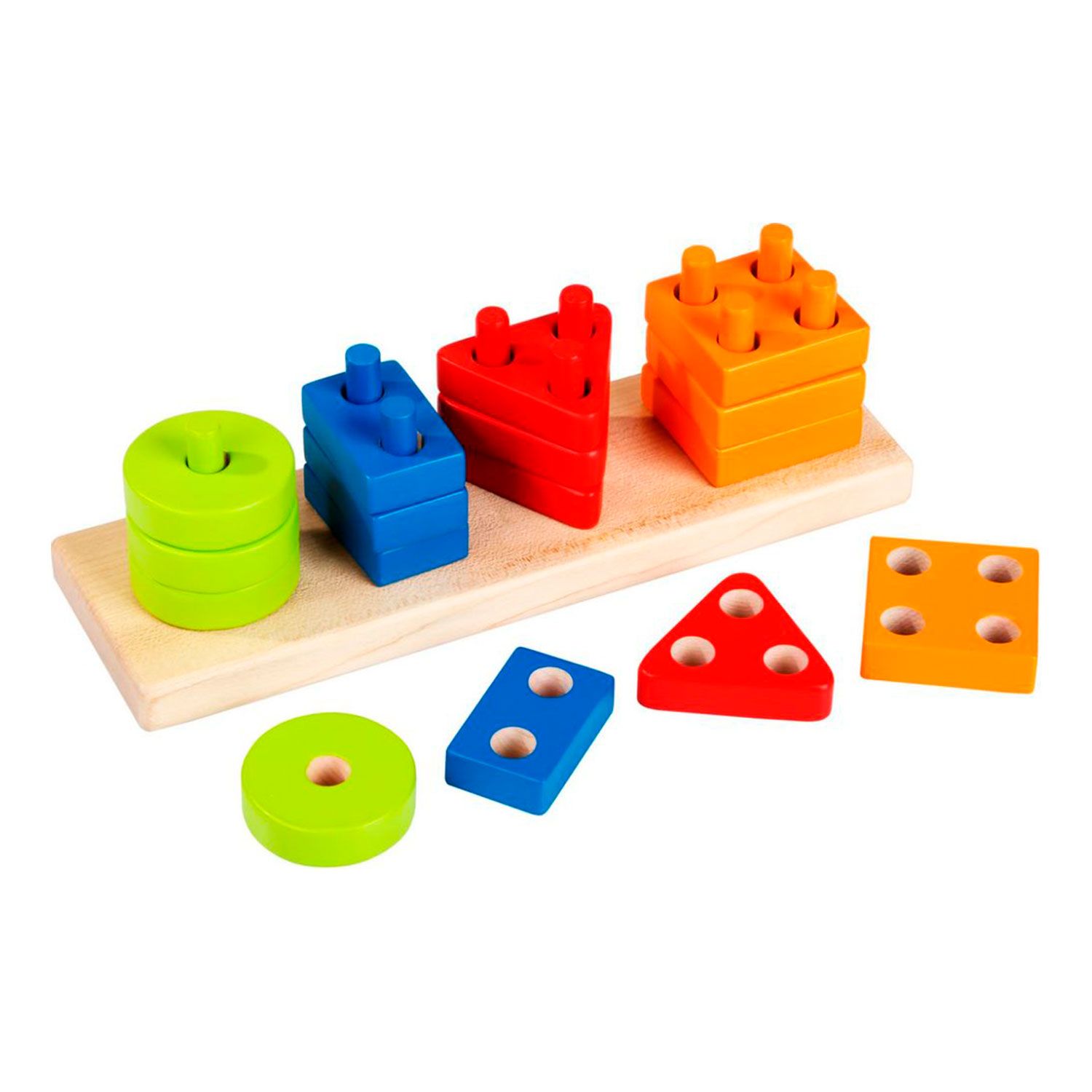 - сборка сортера осуществляется путем нанизывания его элементов на деревянные штырьки, закрепленные на прямоугольной детали-основании