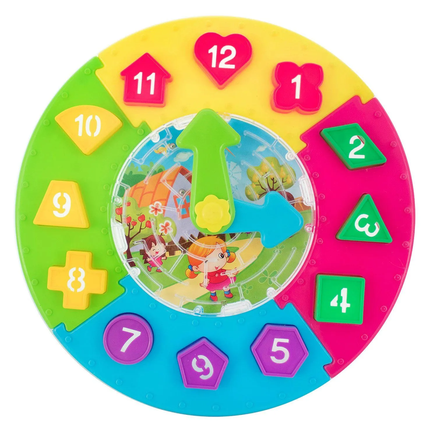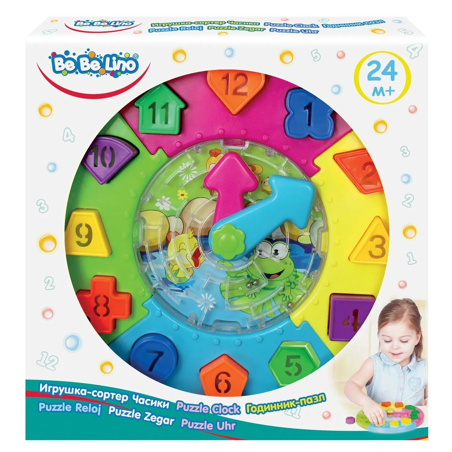 - в процессе игры с этой игрушкой, ваш ребенок сможет научиться определять время по часам, выучить цвета, цифры и геометрические формы