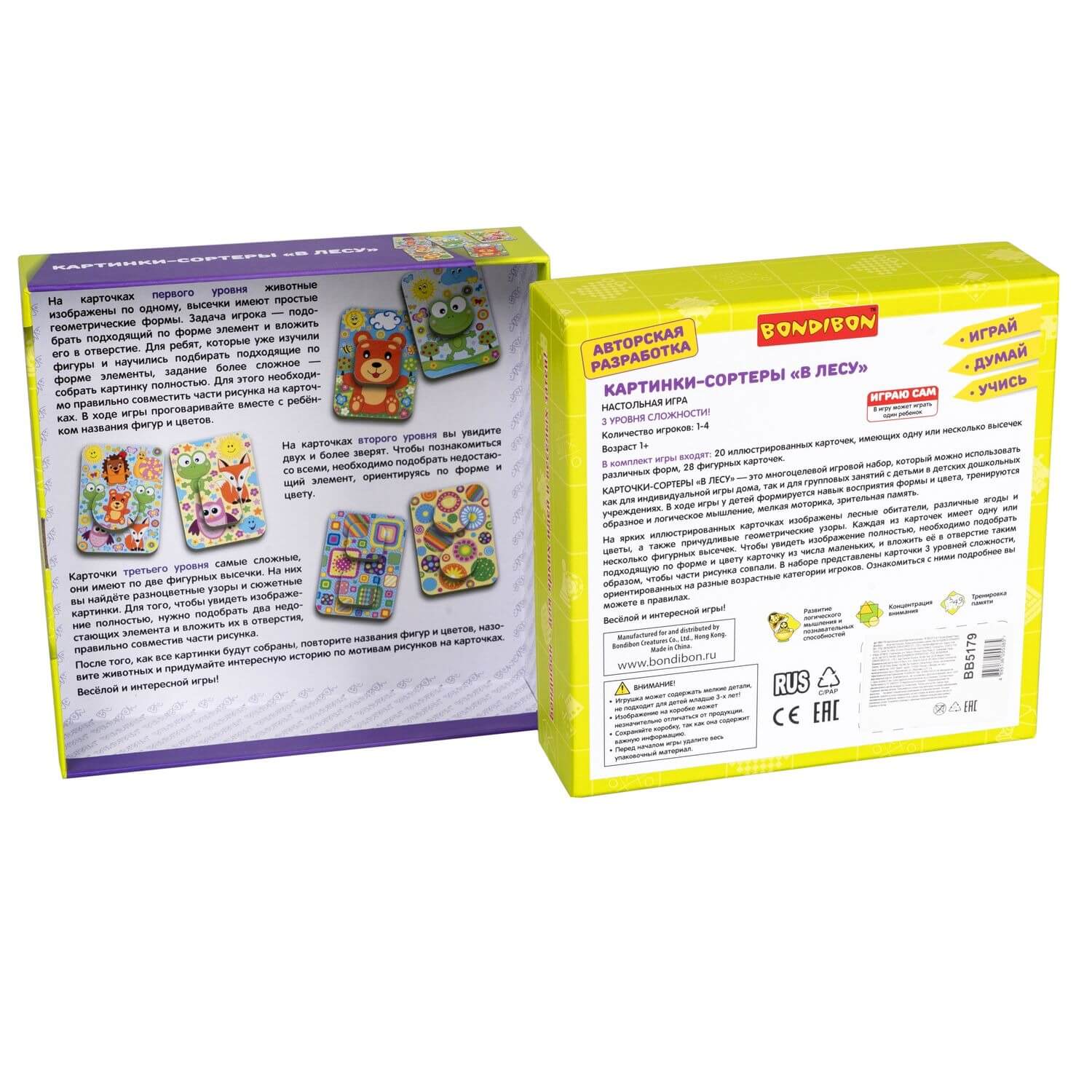 ВВ5179 Настольная игра Картинки-сортеры. "В ЛЕСУ" 3 в 1 Играй Думай Учись Bondibon