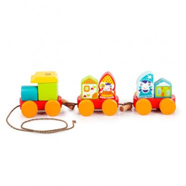 - деревянная игрушка "Сказочный поезд" состоит из 10 деталей разных цветов