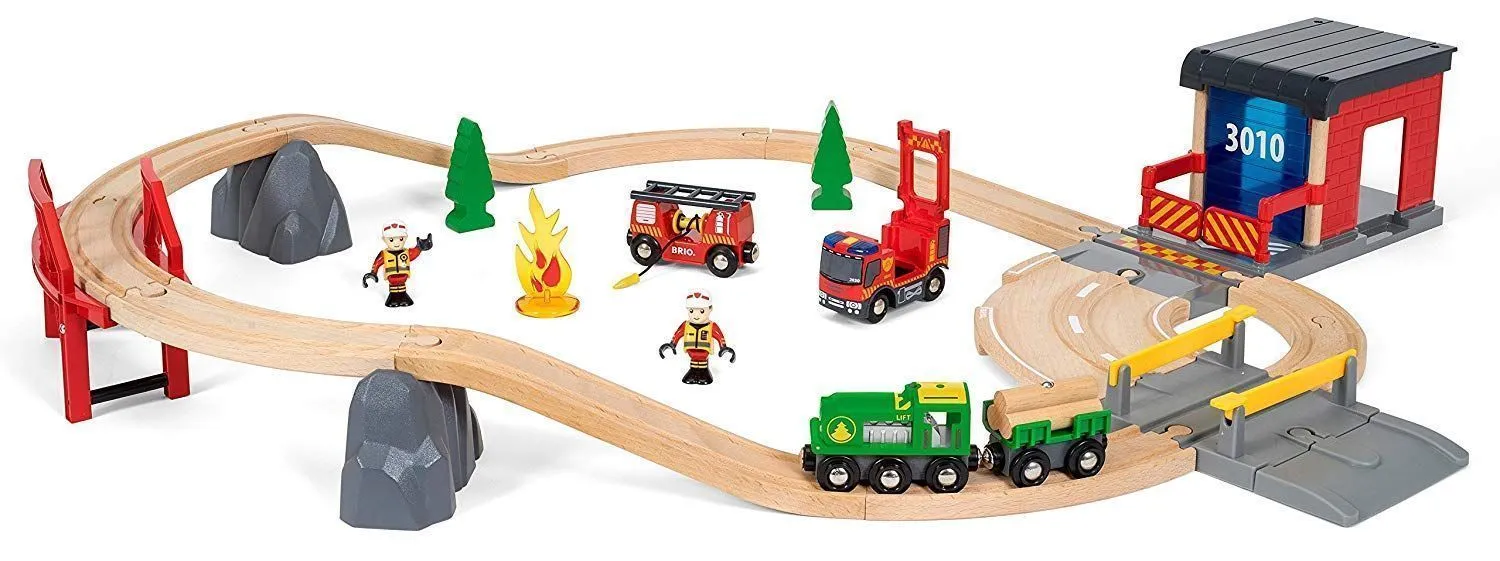 - набор перенесет детей на железную дорогу, где неожиданно загорелся состав, и его приехали тушить смелые спасатели