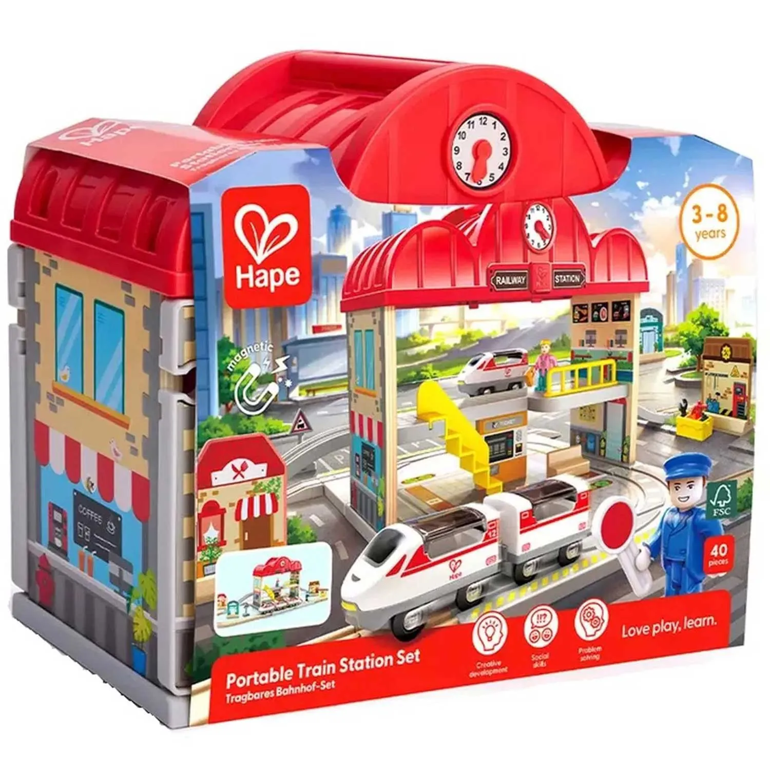 Игровой набор Hape «Железнодорожная станция» (E3877_HP) — это компактный и многофункциональный комплект для детей от 3 лет, который превращает игру в увлекательное путешествие. Набор сочетает яркие фигурки, поезд, элементы станции и дорожные аксессуары, позволяя ребенку создавать собственные истории и сценарии.