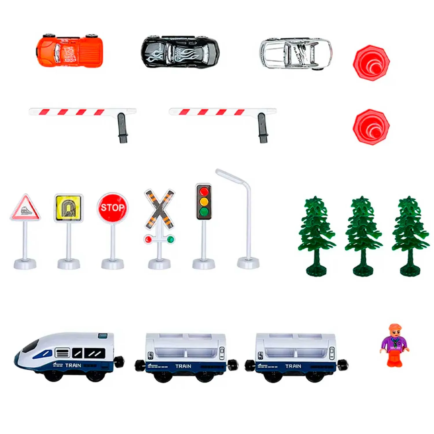 G211-018 Детская железная дорога "Мой город, 103 предмета", на батарейках со светом и звуком (синяя)