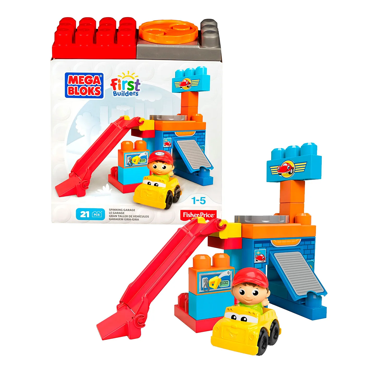 Конструктор из серии First Builders предназначен для самых маленьких. Из деталей набора можно собрать яркую детскую площадку. Также в комплекте имеются фигурки человечков.